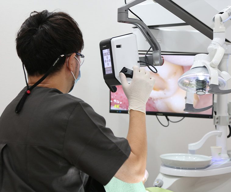 お口の中の状態を高画質で撮影し、患者様にも確認いただけます。